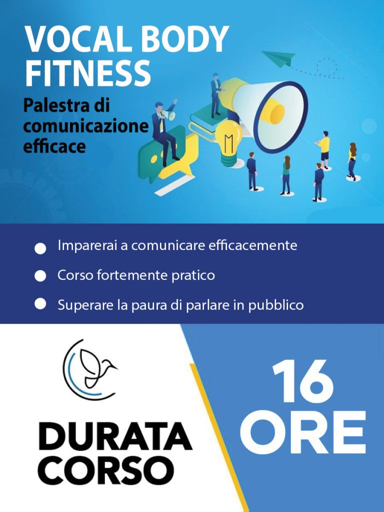 Questo corso, fortemente pratico e a numero chiuso, è la tua occasione per colmare questa lacuna. Ti offriamo allenamenti specifici per superare quella timidezza che ti impedisce di farti avanti. Imparerai a gestire le emozioni ea usare il tuo corpo e la tua voce per esprimere esattamente ciò che intendi, con sicurezza e convinzione. Che tu voglia migliorare le tue presentazioni professionali, parlare al tuo team o aumentare l’efficacia delle tue vendite, VOCAL BODY FITNESS ti fornirà gli strumenti per liberare il tuo potenziale comunicativo. Non ci sono libri o teorie, solo pratica intensa, in un ambiente protetto e dedicato.